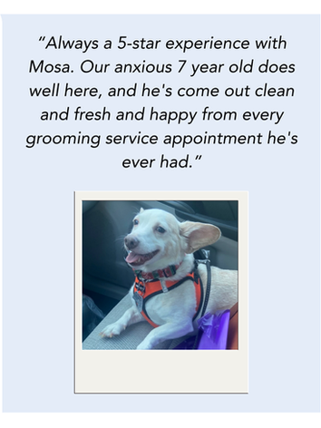 Welcome to the MOSA family, your trusted destination for pet grooming, pet sitting, and personalized care in Cary. Our certified and compassionate team ensures that every visit is a relaxed, tailored experience for dogs, cats and more.
