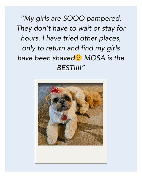 At MOSA, quality care and attention is provided to each pet individually by one of our professionals. Our bathing and grooming products are all natural and non-toxic. Our team is highly trained in the advanced care that some pets require to ensure that our families are as comfortable during their visit as they are at home.